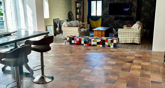 Au rez-de-chaussée se trouve la pièce de vie de 68 m2, la cuisine et une salle de bain (wc).